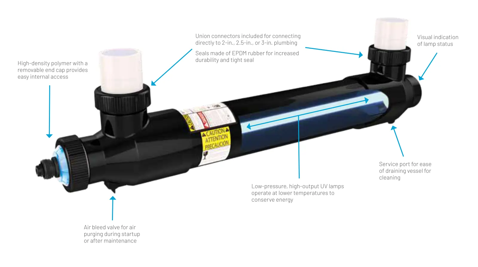 The BioShield UV System pairs perfectly with IntelliCenter®, IntelliTouch® or EasyTouch® Pool Control Systems and IntelliChlor® Salt Chlorine Generators and/or IntelliChem® Water Chemistry Controllers for ultimate pool control and operation ease. The automatic shut-off feature protects the unit and prolongs the lamp life under low-flow conditions.